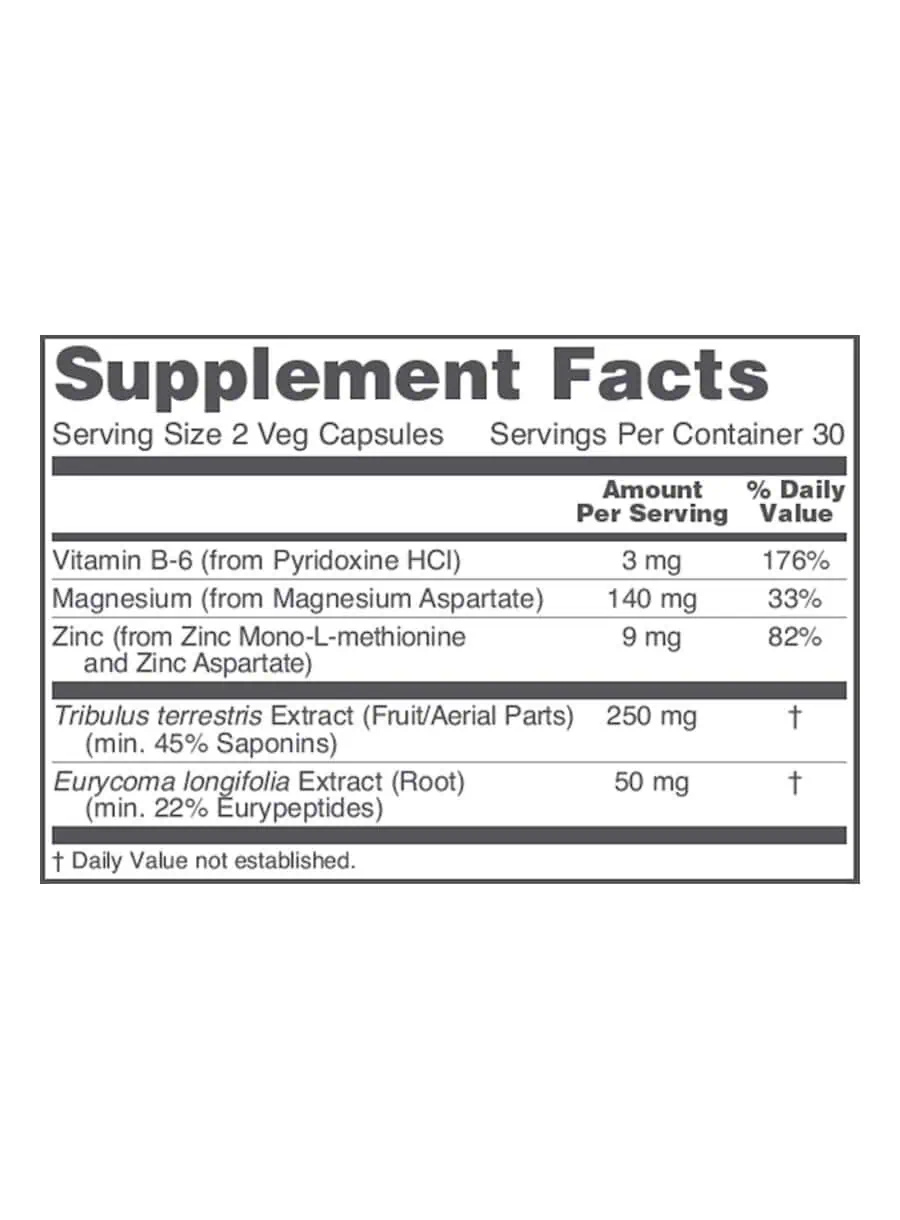 Virility for Men — This dietary supplement is designed to support testosterone levels already within the healthy range. Featuring LJ100®, a potent extract of Eurycoma longifolia, and ZMA®, it promotes male reproductive function and healthy testosterone production. This formula also includes Tribulus, which supports normal glandular function, enhancing energy levels and overall men’s health.