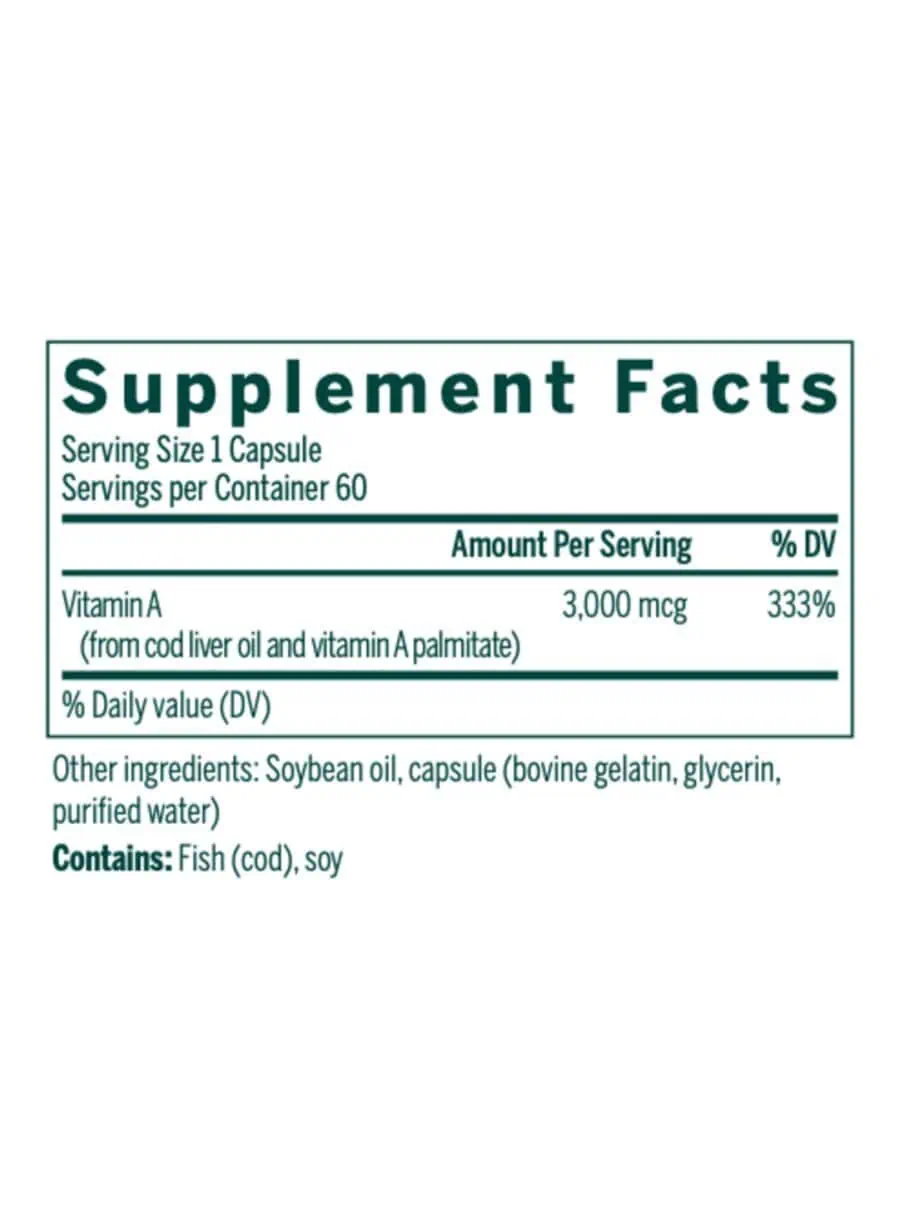 This formula includes Vitamin A sourced from cod liver oil and vitamin A palmitate, providing essential nutrients for overall health.