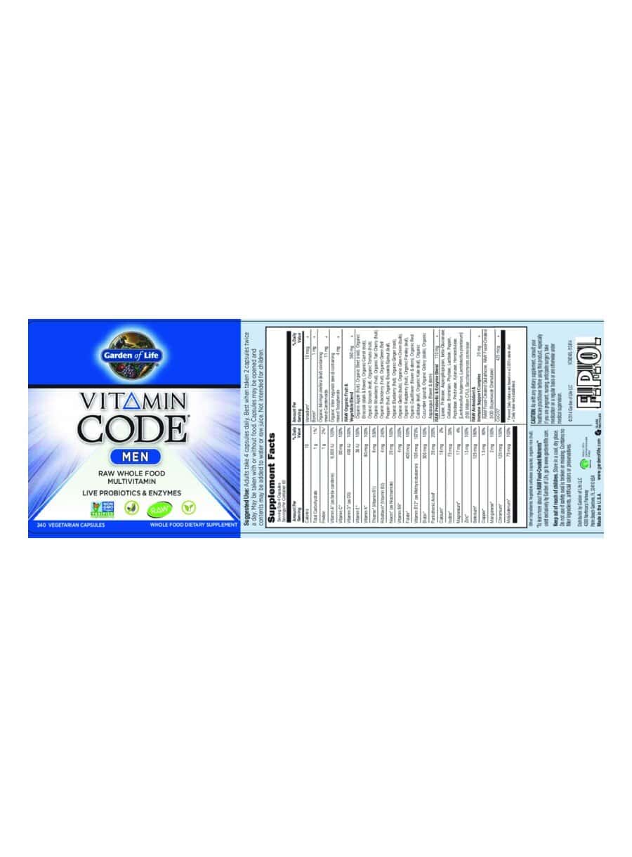 Vitamin Code Men by Garden of Life is a comprehensive whole food multi-nutrient formula specifically formulated to meet the unique needs of active men. This product provides the nourishment the body craves to maintain optimal health and well-being. With 23 fruits and vegetables, it adds supporting antioxidants, vitamins, and nutrient cofactors.