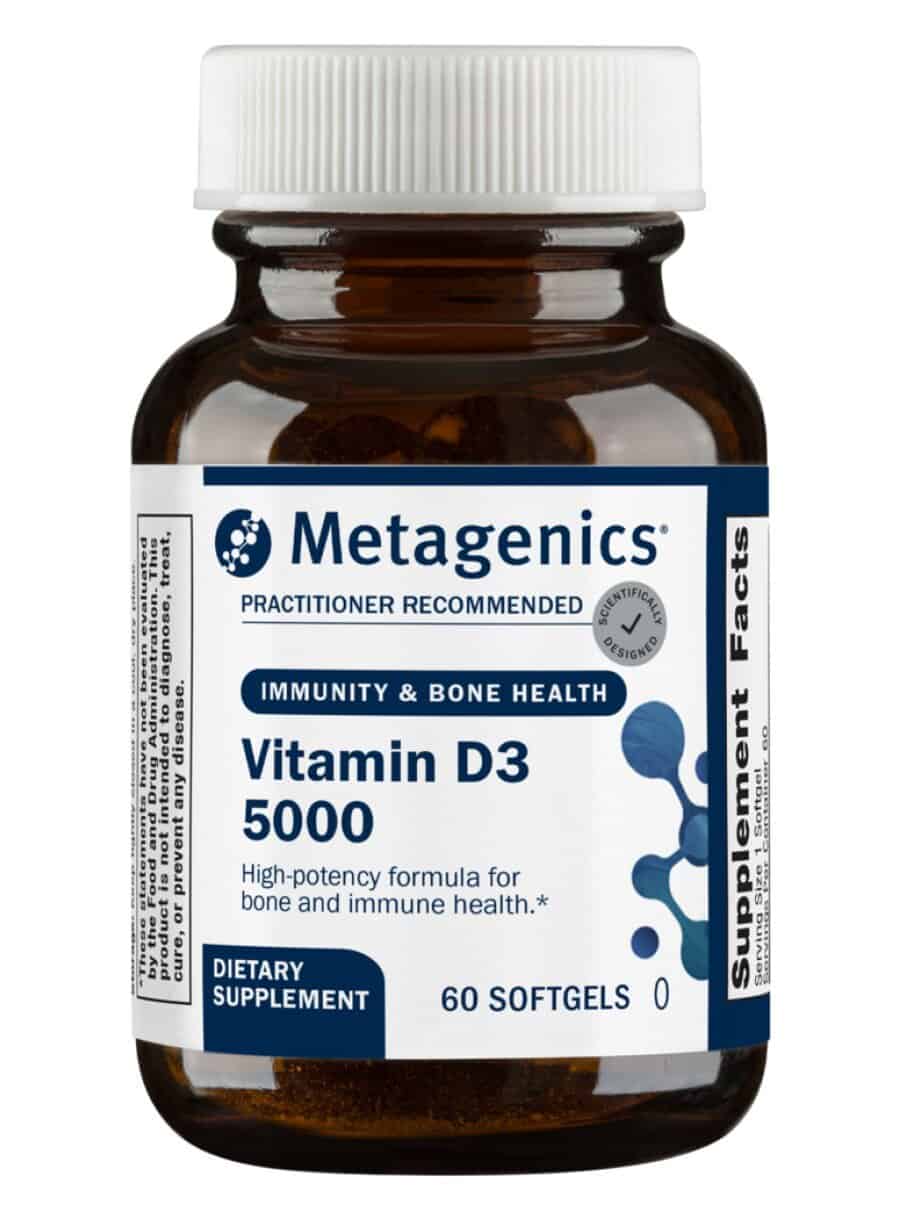 Vitamin D3 5000 — This high-potency vitamin D3 supplement features 125 mcg (5,000 IU) of vitamin D3, the most bioavailable form for optimal absorption. Delivered in easy-to-swallow softgels, this product is solubilized in oil to enhance absorption in the intestinal tract. Vitamin D is essential for supporting bone, cardiovascular, and immune health, making it a vital addition to your daily regimen.