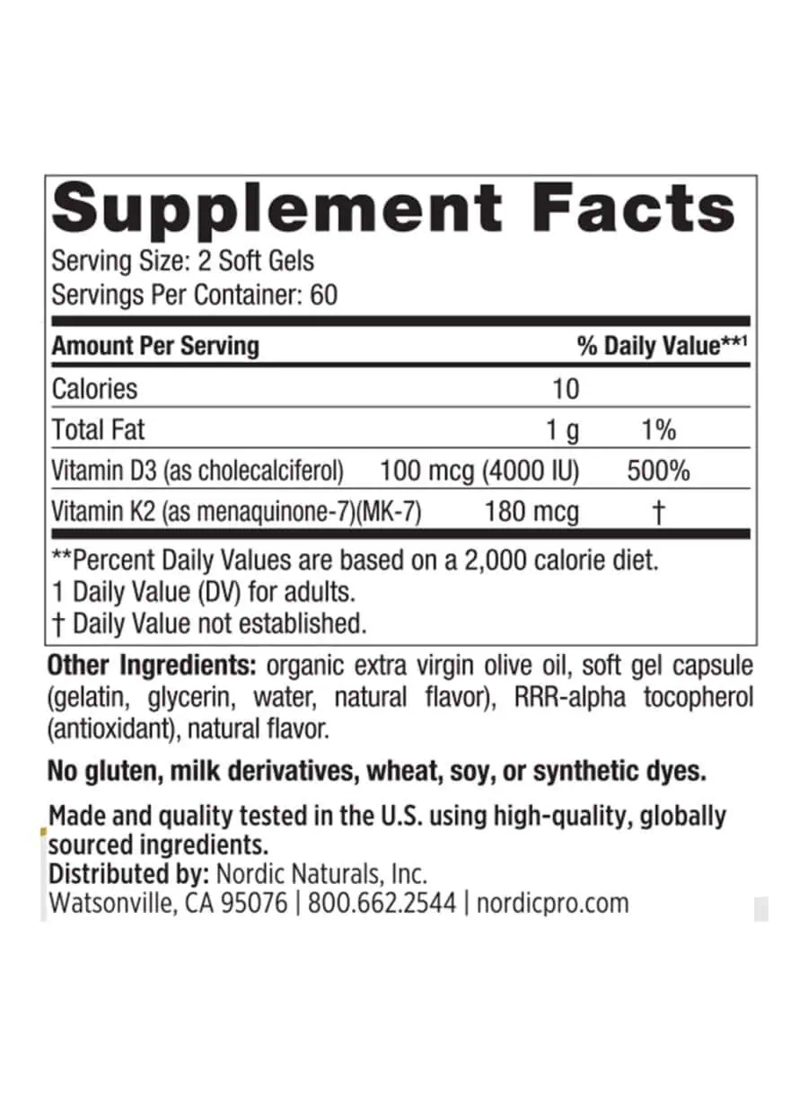 This formula combines Vitamin D3, which aids in calcium absorption, with Vitamin K2, which helps direct calcium to the bones and teeth while preventing its deposition in soft tissues.