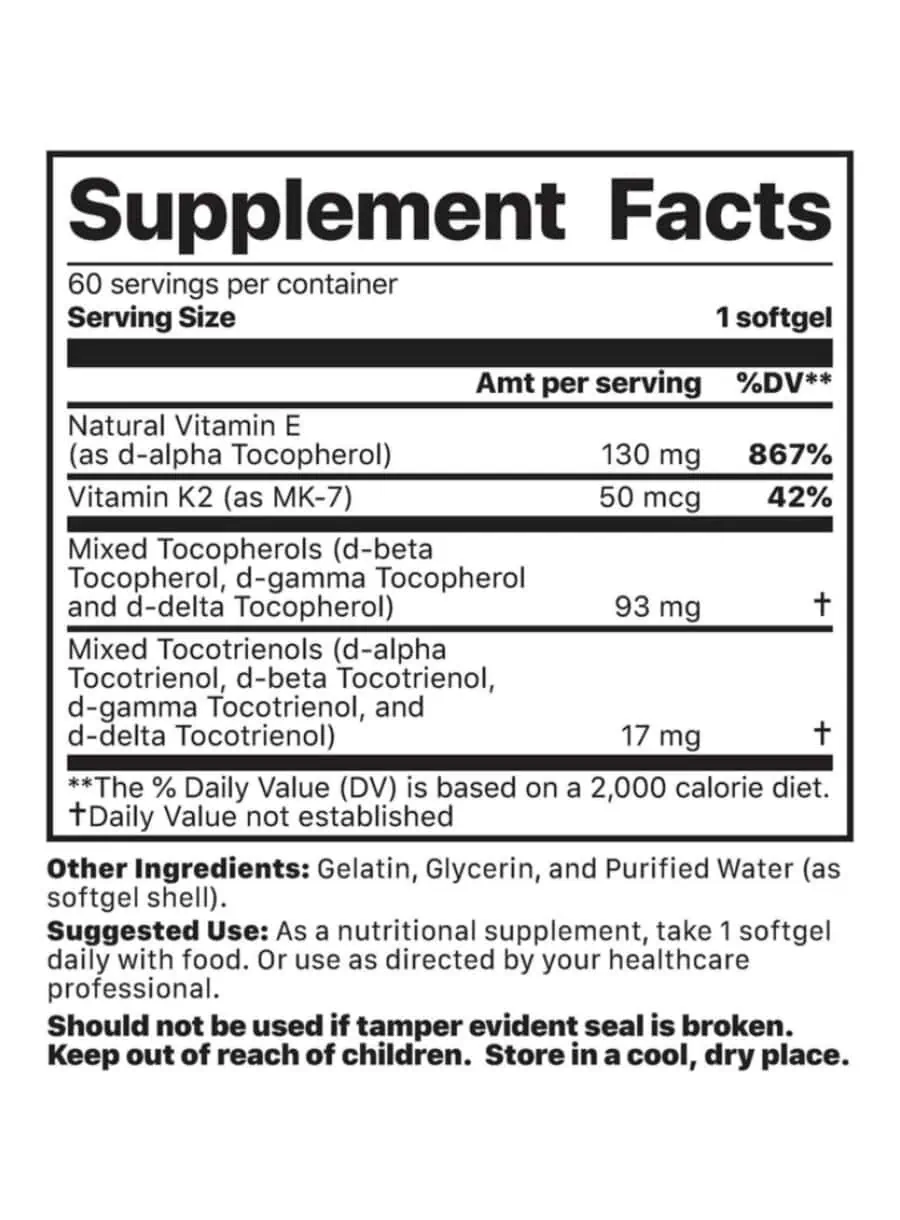 The combination of Vitamin K2 and Vitamin E works synergistically to promote optimal health, ensuring that calcium is effectively utilized in the body while providing antioxidant support.