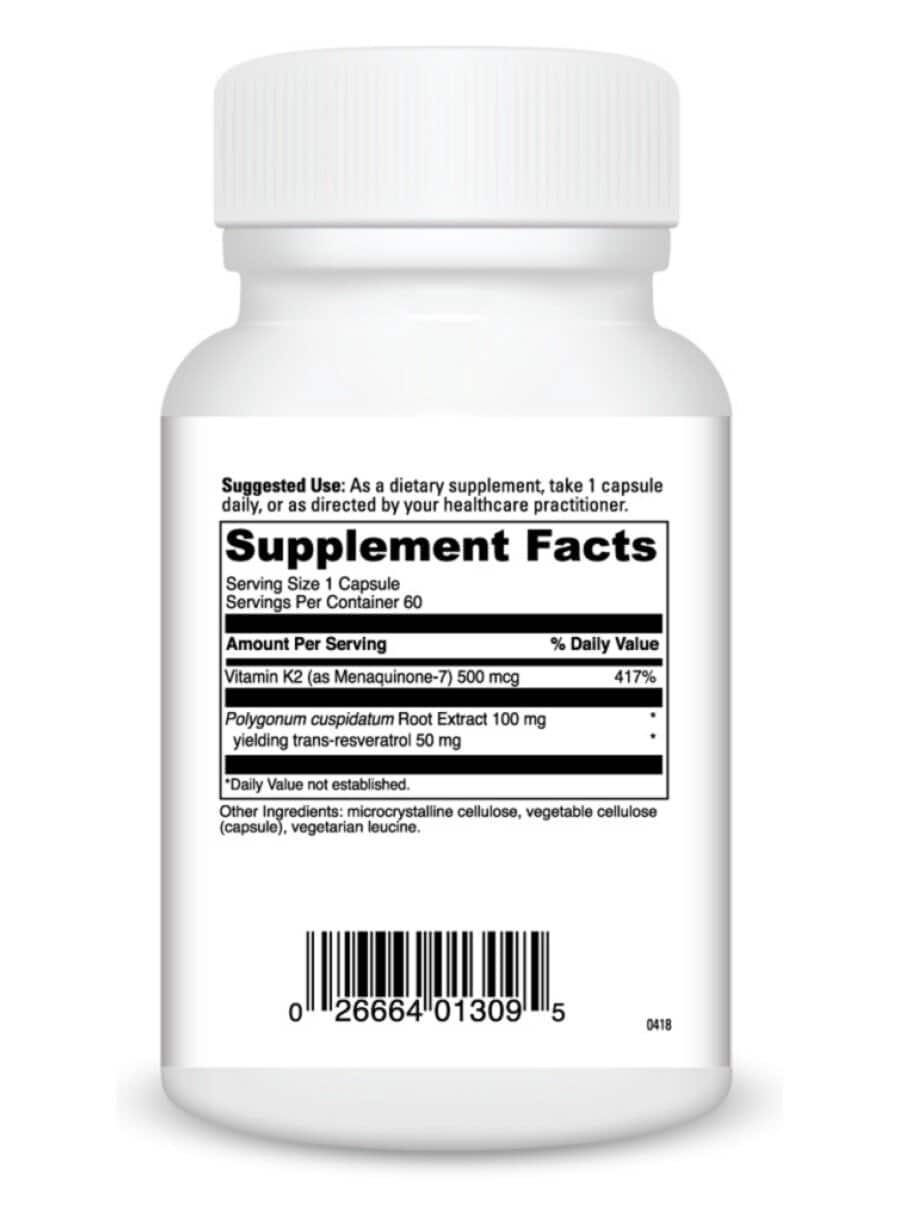 This formula features Vitamin K2 (as Menaquinone-7), which plays a crucial role in bone health by helping to regulate calcium in the bones and blood. The addition of Polygonum caspidatum Root Extract provides trans-resveratrol, known for its antioxidant properties.