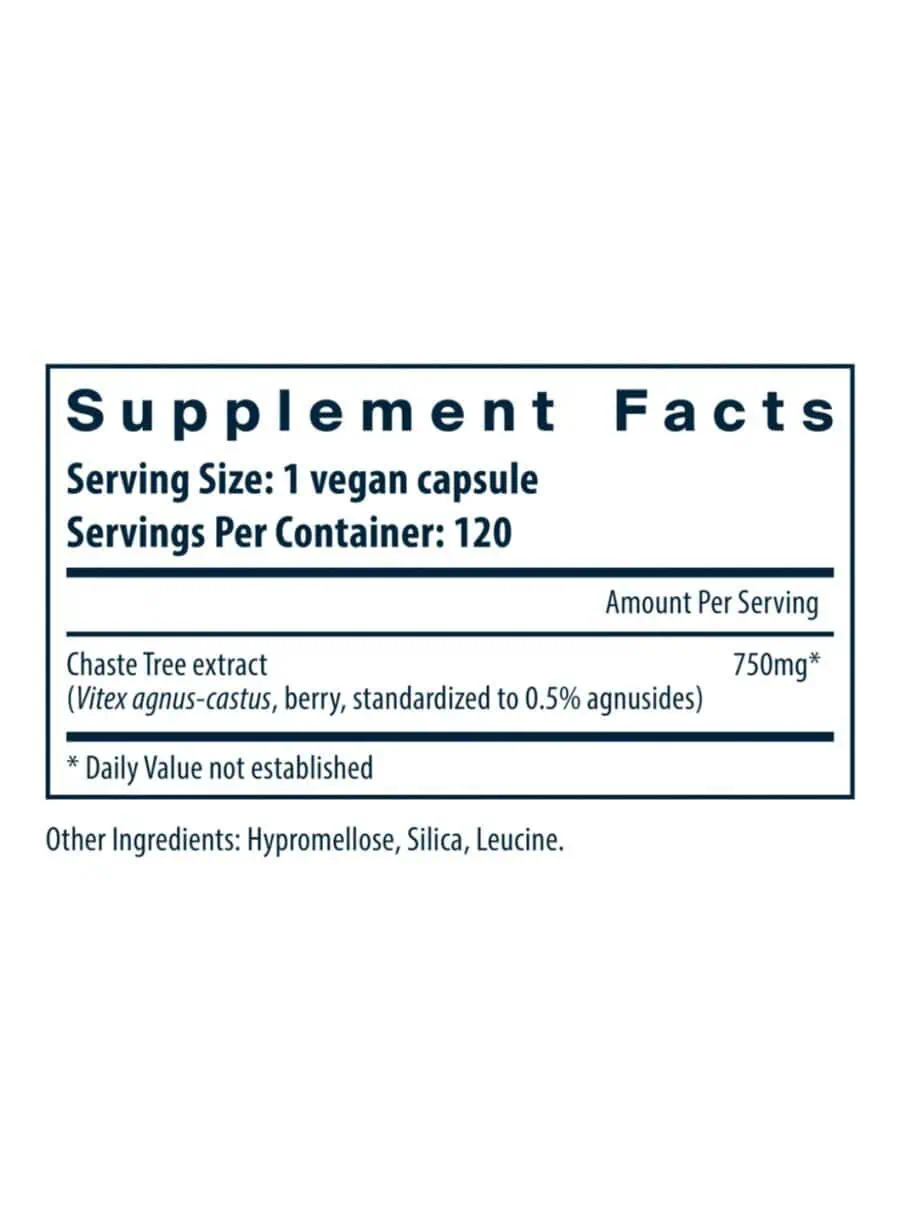 Vitex 750 provides Chaste Tree Berry extract (Vitex agnus-castus), a powerful clinical tool to support women during times of hormonal change.* Vitex helps maintain healthy prolactin and hormonal balance during the monthly menstrual cycle.* Vitex supports breast comfort and healthy mood during the menstrual cycle.* Vitex also helps maintain healthy ovarian function.*