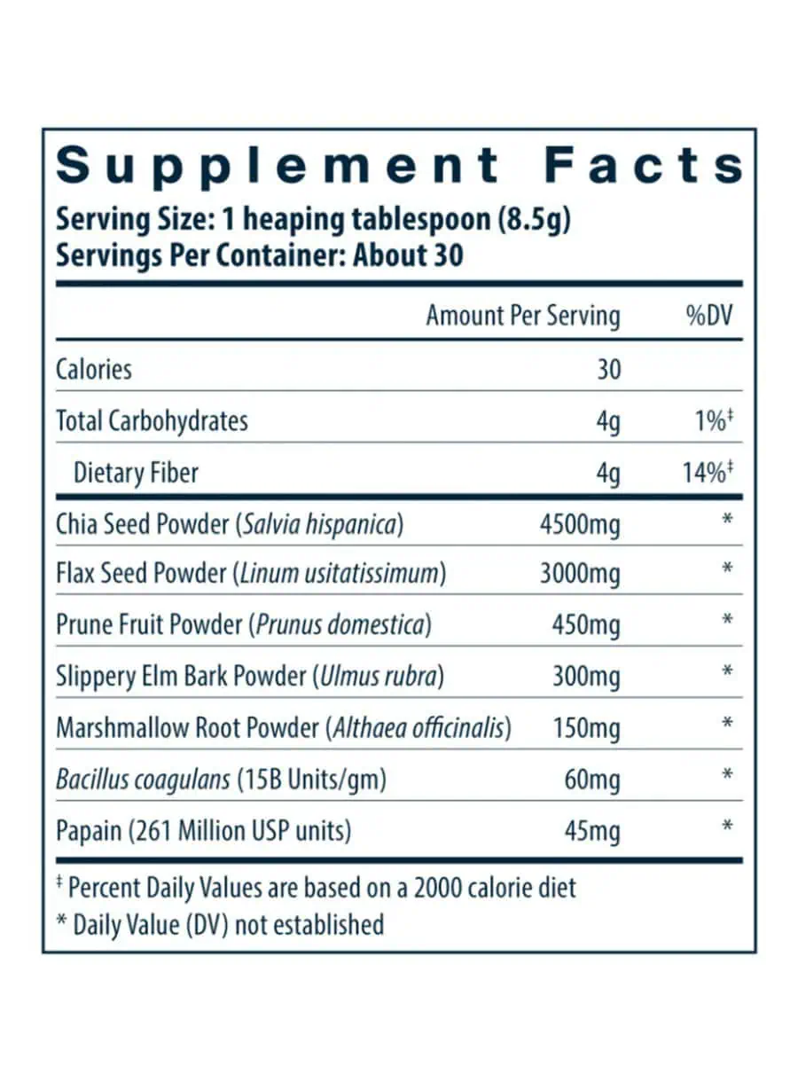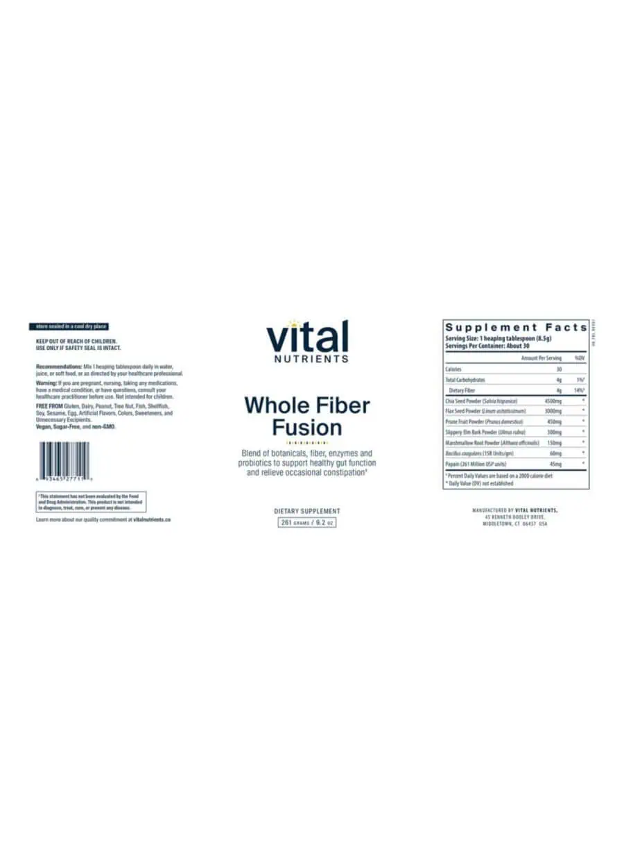 Whole Fiber Fusion is a comprehensive blend of botanicals that naturally provide dietary fiber. By using whole plant powders, Whole Fiber Fusion is easy on the digestive system, relieves occasional constipation and helps maintain intestinal flora.* Chia Seeds and Flax Seeds are nutritional power houses that contain lignans and alpha linolenic acid, an omega-3 fatty acid.* Lactobacillus Sporogenes, a probiotic, and Papain, a digestive enzyme derived from papaya, are included in Whole Fiber Fusion to promote healthy digestion.*