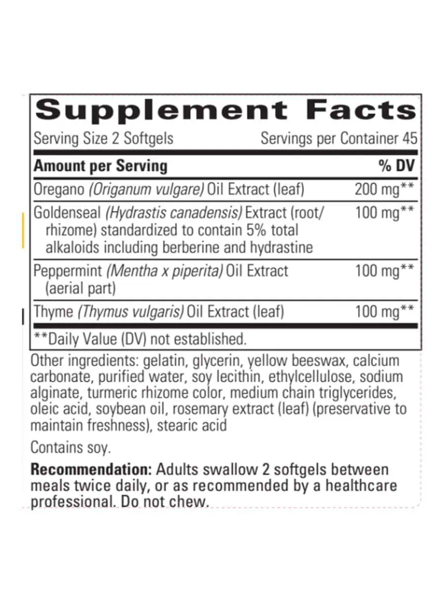 Thyme: Thyme (Thymus vulgaris) has been used traditionally as a remedy to support the health of the respiratory and digestive systems.†16,17 The main active constituent, thymol, has been shown to be active in controlling yeast growth.†18-24 Thyme extracts also support healthy neutrophil production and proper balance of inflammatory mediators.†25